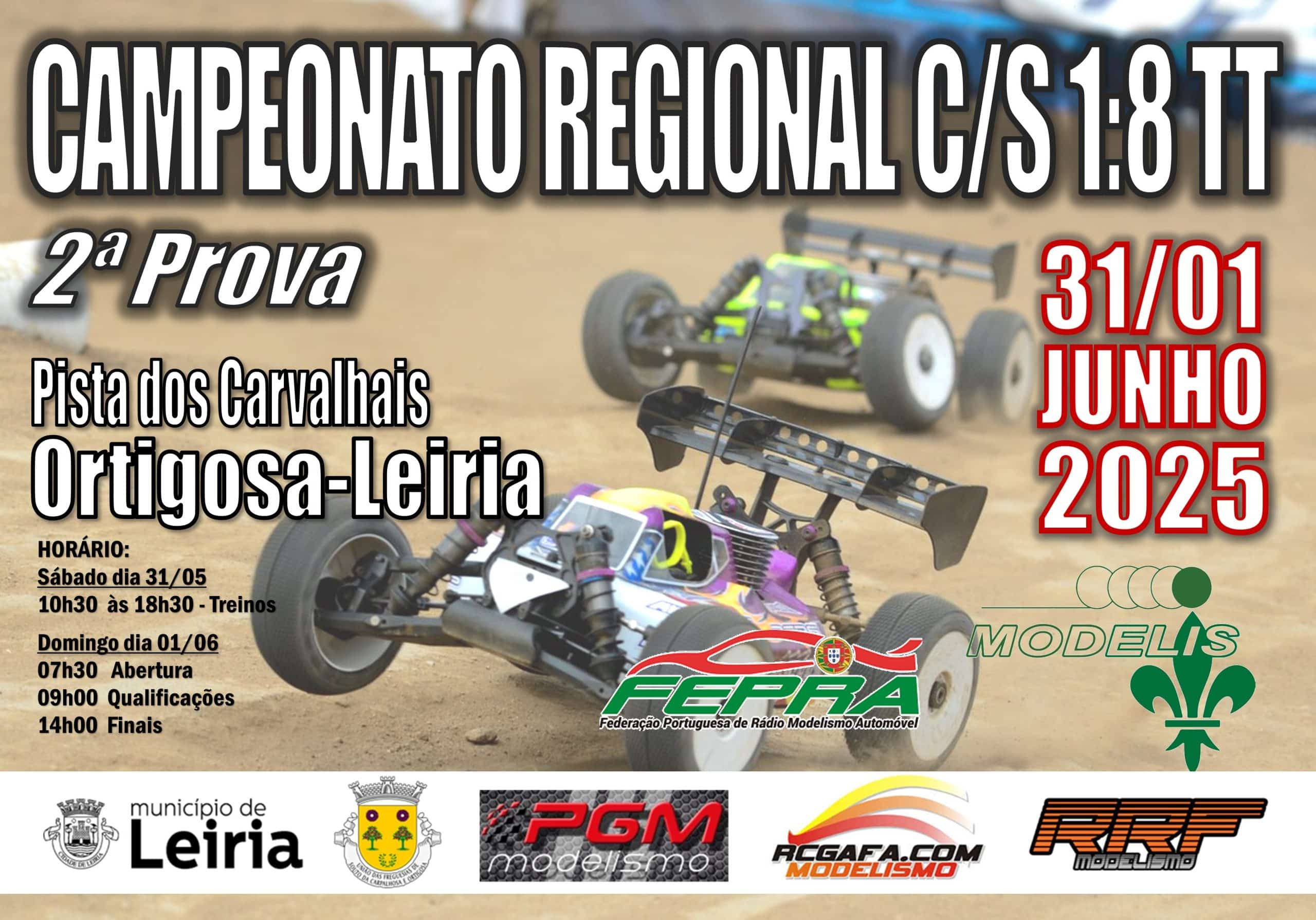 O Modelis – Modelismo do Lis organiza, nos dias 31 de maio e 1 de junho de 2025, a 2.ª prova do Campeonato Regional Centro/Sul de 1/8 TT, a decorrer na recentemente remodelada Pista TT dos Carvalhais, na Ortigosa.