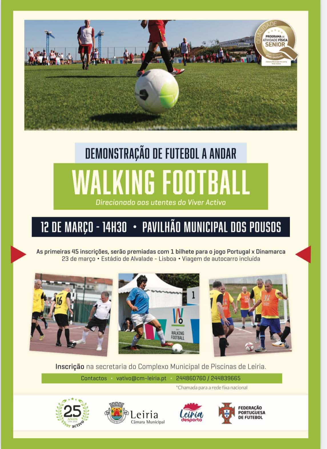 O Município de Leiria e a Federação Portuguesa de Futebol levam a efeito, no próximo dia 12 de março, às 14h30, no Pavilhão Desportivo Municipal dos Pousos, uma Demonstração de Walking Football direcionada para os utentes do programa Viver Activo.