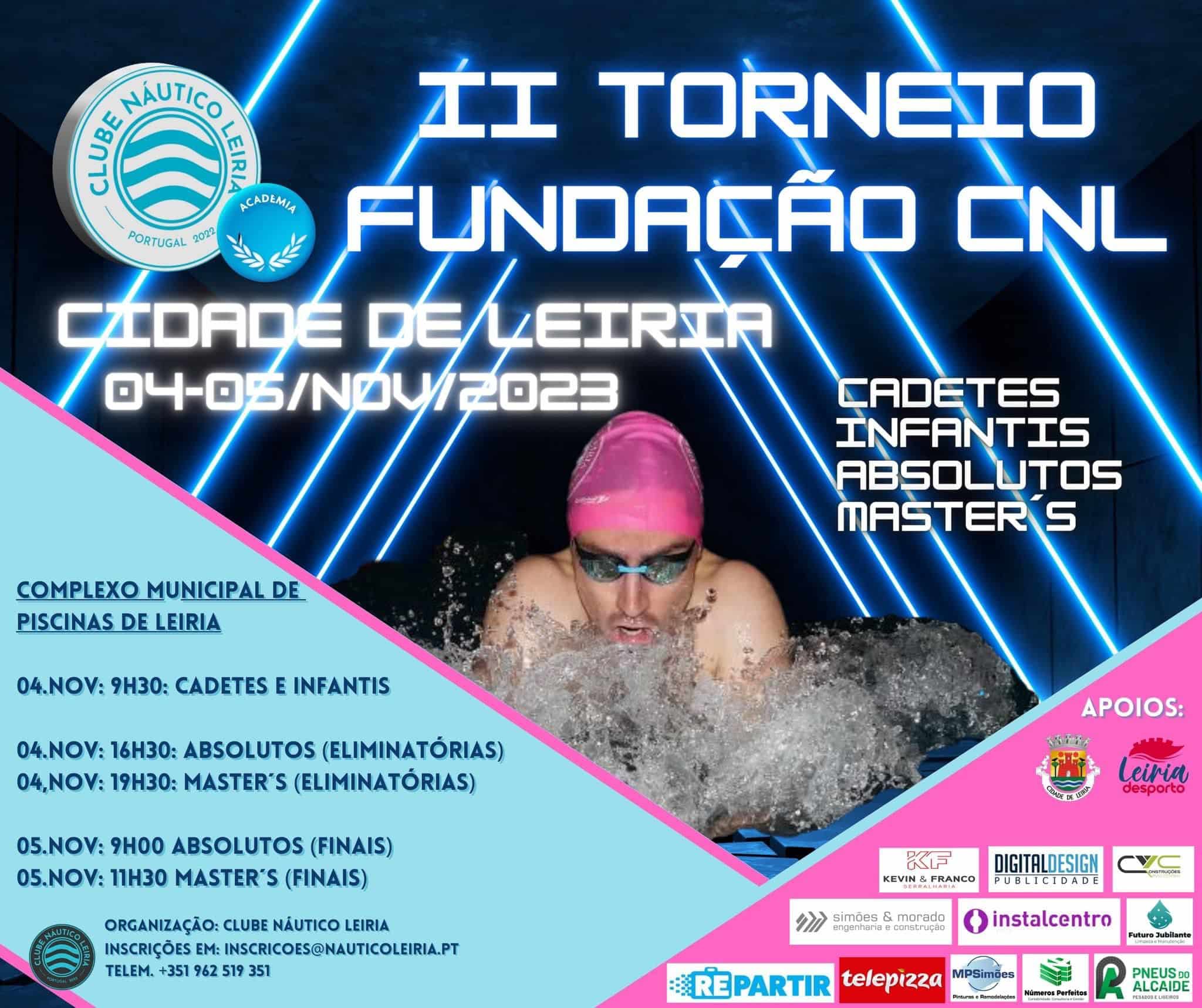 A 2.ª edição do Torneio Fundação do Clube Náutico de Leiria realiza-se nos dias 4 e 5 de novembro de 2023, no Complexo Municipal de Piscinas de Leiria.